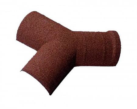 Y – образный коньковый элемент применяется для вальмовых кровель, имеющих небольшие углы уклона. Этот элемент монтируется на стык горизонтального и двух диагональных коньковых элементов, расположенных под углом 45 С. Обеспечивает защиту от влаги, физических воздействий, способствует выходу воздуха из-под кровли.